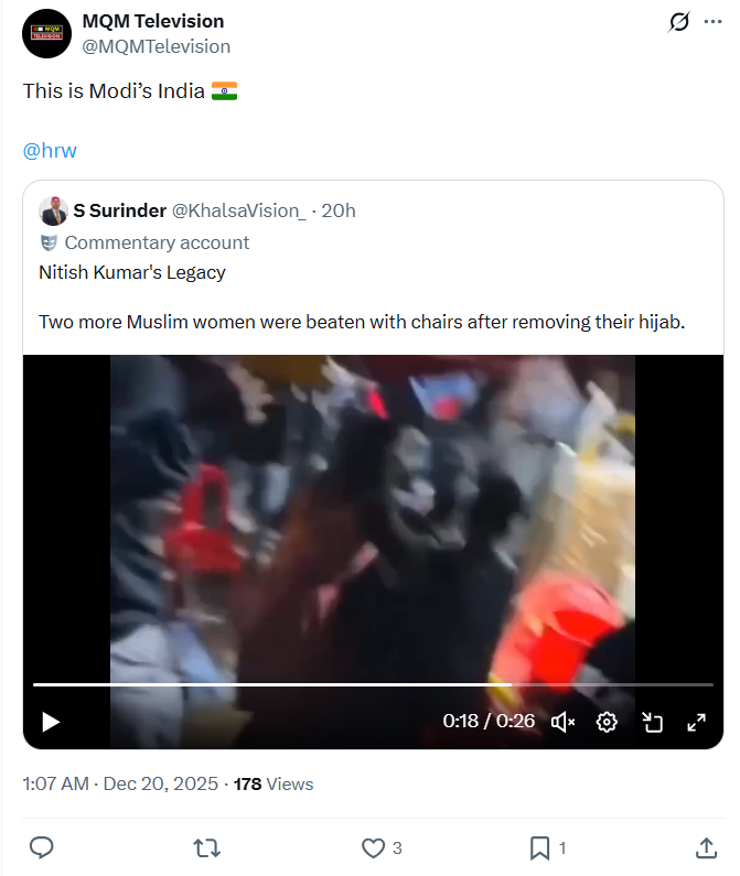 इस वीडियो को कनाडा से संचालित पाकिस्तानी प्रोपेगेंडा अकाउंट MQM Television ने शेयर करते हुए लिखा, ‘यह मोदी का भारत है।’