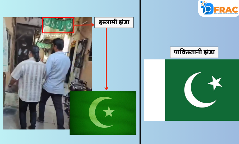 DFRAC के फैक्ट चेक से साफ है कि सोशल मीडिया पर महाराष्ट्र में मुस्लिम इलाके में लगाए गए इस्लामी झंडे को पाकिस्तानी झंडा बताकर भ्रामक दावा किया गया है।