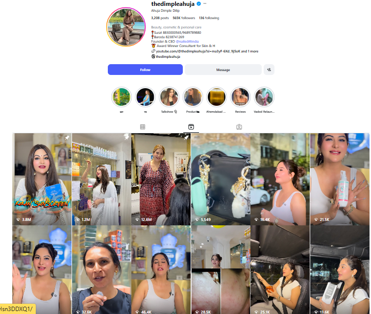 हमें डिंपल अहूजा के इंस्टाग्राम अकाउंट पर उनके कई और वीडियो भी मिले, जिसमें वह स्किन केयर के बारे में जानकारी देती हुई दिखाई देती हैं।