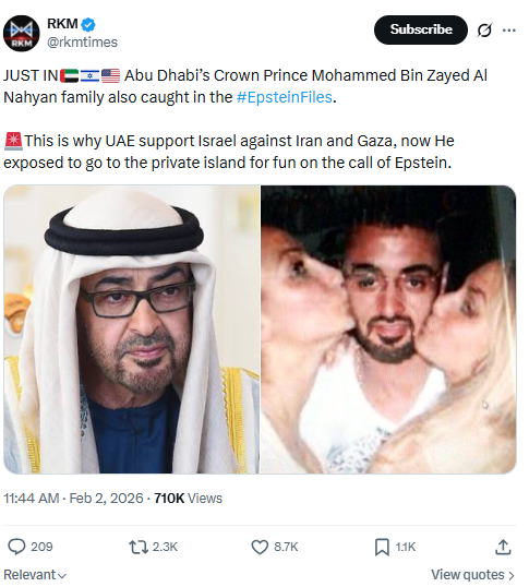 सोशल मीडिया पर दो महिलाओं के साथ दिखाई दे रहे एक शख्स की तस्वीर को अबू धाबी के क्राउन प्रिंस मोहम्मद बिन ज़ायद अल नाहयान का बताकर शेयर किया जा रहा है। इसके साथ यह भी दावा किया जा रहा है कि वायरल तस्वीर अमेरिकी यौन अपराधी जेफरी एपस्टीन की फाइल्स से जुड़ी हुई है।
