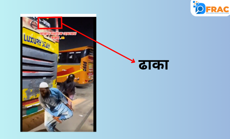 इन यूट्यूबर्स द्वारा वीडियो के बारे में विस्तृत जानकारी नहीं दी गई है। वहीं हमने जब वीडियो को गौर से देखा तो पाया कि वीडियो में दिख रही बस पर बंगाली भाषा में ढाका लिखा है, जो बांग्लादेश की राजधानी है। इसके अलावा वीडियो को देखने के बाद हमें इसके स्क्रिप्टेड होने के भी तथ्य मिले। जैसे वीडियो में मुस्लिम शख्स पर हमलावर लाठी से कमर पर वार करता है, लेकिन वह पैर को पकड़कर जमीन पर बैठ जाता है। इसके बाद गोली चलने की आवाज तो आती है, लेकिन मुस्लिम शख्स के शरीर के किसी हिस्से में गोली लगने या उसके किसी प्रकार के जख्म के निशान नहीं दिखते हैं। वहीं वीडियो को किसी अन्य व्यक्ति द्वारा शूट किया जा रहा है, जो बिल्कुल उसी मोमेंट को कैप्चर करता है, जब हमला हो रहा होता है। जो आमतौर पर स्क्रिप्टेड वीडियो में होता है।