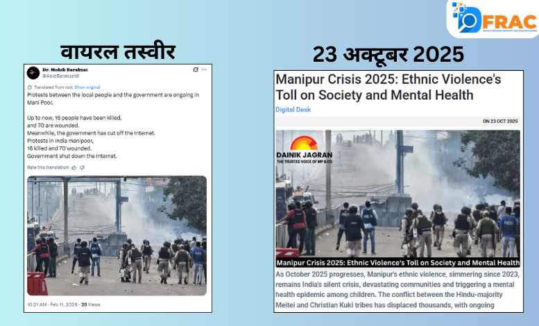 वहीं, हमारी टीम ने आगे की जांच में पाया कि सोशल मीडिया जिस तस्वीर को मणिपुर की हालिया घटना और 16 लोगों की मौत होने के दावे का साथ शेयर किया गया है, वह तस्वीर हाल-फिलहाल की नहीं है। इस तस्वीर के साथ हमें दैनिक जागरण की वेबसाइट पर 23 अक्टूबर 2025 का एक ओपिनियन मिला, जिससे यह स्पष्ट होता है कि यह तस्वीर हाल-फिलहाल की नहीं है।