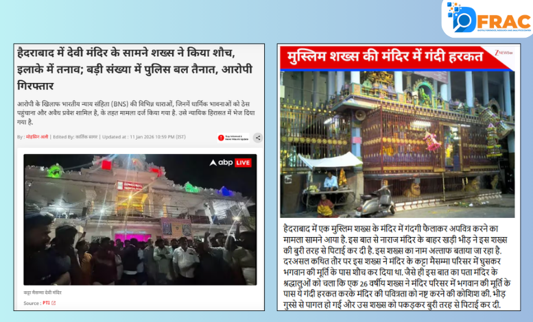 DFRAC की टीम ने वायरल वीडियो की जांच में पाया कि यह घटना मुंबई के मीरा रोड की नहीं है, बल्कि जनवरी में तेलंगाना के हैदराबाद में हुई घटना की है। यह मामला धार्मिक पहचान के आधार पर पिटाई किए जाने का नहीं है, बल्कि एक मंदिर में गंदगी करने के आरोप में युवक की पिटाई का है।
