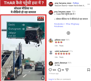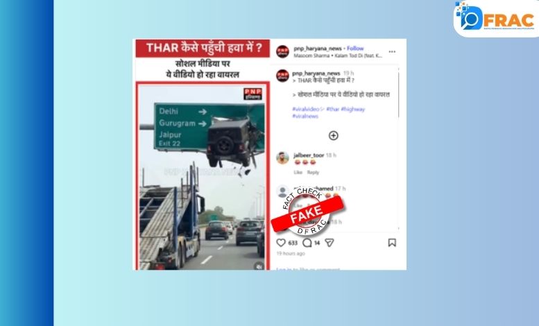 DFRAC की फैक्ट चेक से साफ है कि नेशनल हाईवे 48 पर ब्लैक थार की ग्रीन साइन बोर्ड में छलांग लगाकर घुसने का वीडियो किसी वास्तविक घटना का नहीं है। यह AI जनरेटेड वीडियो है। इसलिए यूज़र्स का दावा गलत है |