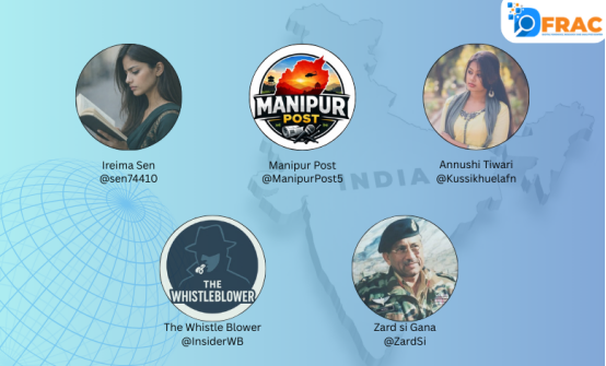 हमारी टीम ने विश्लेषण के दौरान पाया कि मणिपुर को लेकर ऑनलाइन प्रोपेगेंडा करने वाले यूजर्स मणिपुर से जुड़ी घटनाओं को एक खास नैरेटिव के साथ प्रस्तुत करते दिखाई देते हैं। इनकी पोस्टिंग में अक्सर स्थानीय घटनाओं को व्यापक सुरक्षा संकट, सैन्य टकराव, देश विरोधी और राज्य-विरोधी कार्रवाई के रूप में पेश करने की प्रवृत्ति नजर आती है। इनमें से कई यूजर्स के पाकिस्तान से जुड़े होने की तरफ इशारा करते हैं। इन यूजर्स में मणिपुर पोस्ट (ManipurPost5), जर्द सी गना (ZardSiGana), व्हिसल ब्लोअर (InsiderWB), इरीमा सेन (Ireima Sen) और अनुशी तिवारी (Kussikhuelafn) नामक हैंडल शामिल हैं। ये हैंडल्स मणिपुर की घटनाओं को भारत-विरोधी फ्रेम में रखकर प्रस्तुत करता है। कई मामलों में विजुअल सामग्री का स्रोत स्पष्ट नहीं होता, जिससे दावों की विश्वसनीयता संदिग्ध हो जाती है। इनमें से 4 अकाउंट्स ManipurPost5, ZardSiGana, InsiderWB और Kussikhuelafn को भारत में विथहेल्ड कर दिया गया है, यानी इन अकाउंट्स के पोस्ट को अब भारत में नहीं देखा जा सकता है, वहीं सिर्फ एकमात्र Ireima Sen अकाउंट ही सक्रिय है।