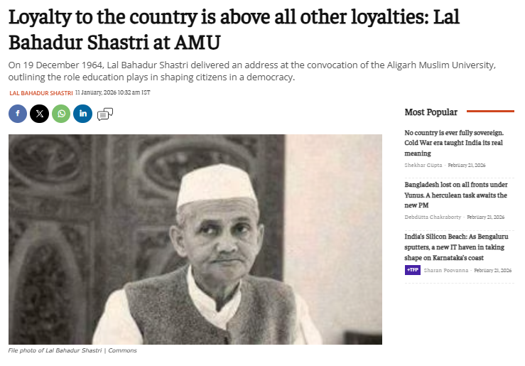 DFRAC की टीम ने जांच में पाया कि यह दावा फेक है। AMU पर लाल बहादुर शास्त्री ने प्रतिबंध नहीं लगाया था। हमने AMU पर प्रतिबंध लगाए जाने के संबंध में कई कीवर्ड्स सर्च किए, लेकिन हमें AMU पर प्रतिबंध लगाए जाने की कोई सूचना नहीं मिली। हमें, द प्रिंट का एक लेख मिला, जिसमें 1964 में लाल बहादुर शास्त्री के एएमयू दीक्षांत समारोह में शामिल होने का उल्लेख किया गया है।