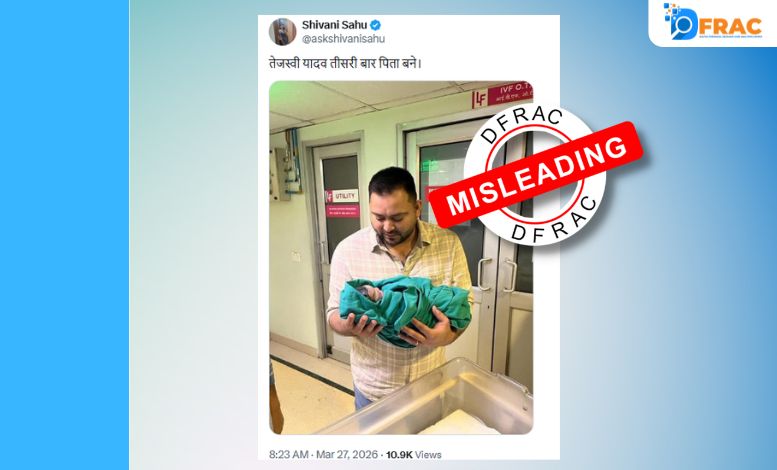 DFRAC की जांच में वायरल दावा भ्रामक पाया गया। वायरल तस्वीर हाल की नहीं है, बल्कि वर्ष 2023 की है, जब तेजस्वी यादव पहली बार पिता बने थे। इसलिए “तीसरी बार पिता बनने” का दावा पूरी तरह गलत है।