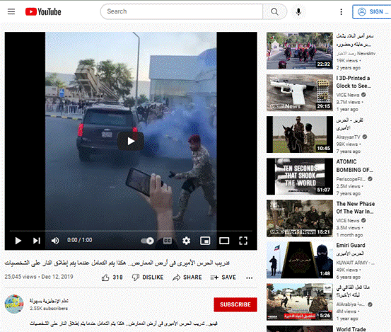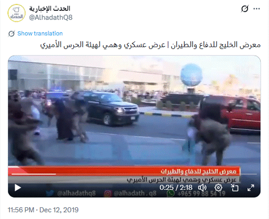 इस वीडियो को Al-Hadath News ने भी दिसंबर 2019 में शेयर किया था, जहां इसे एक सैन्य प्रदर्शन बताया गया।