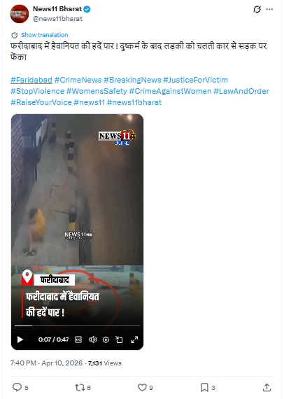 वीडियो को शेयर करते हुए एक यूजर ने लिखा, ‘फरीदाबाद में हैवानियत की हदें पार ! दुष्कर्म के बाद लड़की को चलती कार से सड़क पर फेंका’