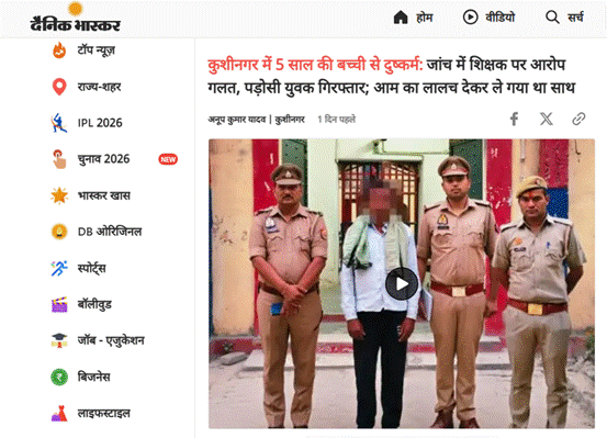 इसके अलावा, Kushinagar Police द्वारा जारी आधिकारिक बयान में भी स्पष्ट किया गया कि बच्ची के साथ दुष्कर्म करने वाला वास्तविक आरोपी सुरेंद्र सिंह पुत्र स्वर्गीय रामरतन सिंह, निवासी विरवट कोन्हवलिया, थाना तरयासुजान, जनपद कुशीनगर है।