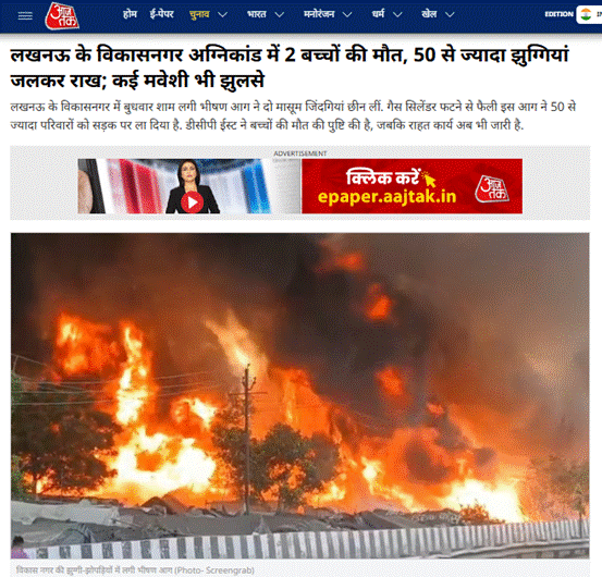 इसके अलावा हमें घटना से जुड़ी Aaj Tak, Zee News और अन्य मीडिया संस्थानों की रिपोर्ट्स भी मिलीं। इन रिपोर्ट्स से साफ होता है कि वायरल वीडियो लखनऊ के विकासनगर में लगी आग का है।
