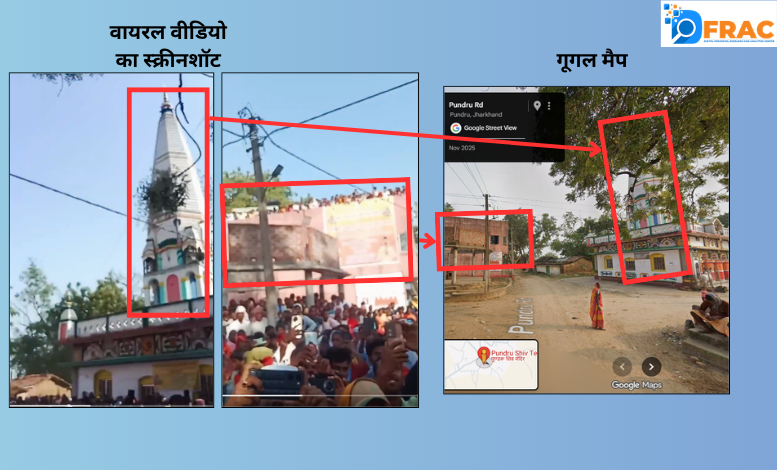 आगे की जांच के लिए हमने पुंडरू मेला के बारे में गूगल पर सर्च किया। हमने पाया कि झारखंड के बोकारो जिले के चास प्रखंड के पुंडरू गांव में भोगता पर्व (चड़क पूजा) मनाई जाती है। इस पूजा के दौरान मान्यताओं के तहत आलकाप कार्यक्रम का भव्य आयोजन होता है, जिसमें शिव भक्त अद्भुत और रोमांचकारी करतब दिखाते हैं। यह वीडियो भी उसी करतब का हिस्सा है। हमने गूगल मैप पर उसी शिव मंदिर को ढूंढा, जो वायरल वीडियो में दिख रहा है।
