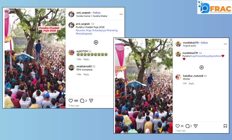 DFRAC के फैक्ट चेक से साफ है कि सोशल मीडिया पर शेयर किया गया वीडियो किसी युवती को सच में फांसी पर लटकाए जाने की घटना का नहीं है। यह झारखंड के बोकारो जिले के पुंडरू गांव में चड़क पूजा के दौरान करतब दिखाए जाने का वीडियो है। इसलिए यूजर्स का दावा भ्रामक है।