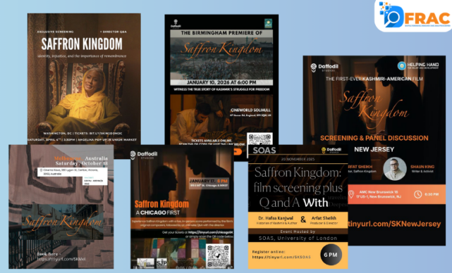 फिल्म ‘Saffron Kingdom’ को केवल एक फिल्म के रूप में नहीं, बल्कि भारत-विरोधी और कश्मीर केंद्रित प्रोपेगेंडा नैरेटिव को आगे बढ़ाने के उपकरण के तौर पर इस्तेमाल किया गया। Daffodil Studios के नेतृत्व में, गुलाम नबी मीर, वर्ल्ड कश्मीर अवेयरनेस फोरम और गुलाम नबी फाई जैसे जुड़े नामों के माध्यम से इसे अंतरराष्ट्रीय स्तर पर बढ़ाया गया। साथ ही Muslim Public Affairs Council, अकादमिक और एक्टिविस्ट नेटवर्क के जरिए इस फिल्म को एक विशेष राजनीतिक दृष्टिकोण के साथ प्रस्तुत किया गया, जो वैश्विक स्तर पर भारत की छवि और कश्मीर मुद्दे को प्रभावित करने की कोशिश करता हुआ प्रतीत होता है।