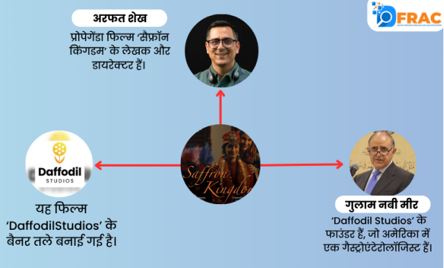 फिल्म ‘सैफ्रॉन किंगडम’ के रचनात्मक और निर्माण पक्ष पर नजर डालें तो इसके पीछे काम कर रहे लोगों और संस्थाओं की भूमिका भी गंभीर चर्चा का विषय बनती है। फिल्म का लेखन और निर्देशन अरफत शेख द्वारा किया गया है, जबकि कहानी को विकसित करने में मरियम खालिद और केटी लीमन की भी महत्वपूर्ण भागीदारी रही है। इस फिल्म के निर्माण से जुड़ा सबसे अहम नाम Daffodil Studios का है, जिसके बैनर तले इस परियोजना को तैयार किया गया। जैसे ही इस स्टूडियो का नाम सामने आता है, फिल्म की पृष्ठभूमि और उद्देश्य को लेकर कई नए सवाल खड़े होने लगते हैं। Daffodil Studios के संस्थापक और प्रेसीडेंट डॉ. गुलाम नबी मीर हैं, जो पेशे से अमेरिका में कार्यरत एक गैस्ट्रोएंटेरोलॉजिस्ट हैं।