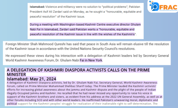 2019 में न्यूयॉर्क में इमरान खान और शाह महमूद कुरैशी के साथ उनकी मौजूदगी इस बात की ओर इशारा करती है कि अंतरराष्ट्रीय मंचों पर कश्मीर को लेकर एक समन्वित नैरेटिव आगे बढ़ाया जा रहा था। इसके बाद 2020 और 2021 में लगातार संपर्क और मंच साझा करना इस नेटवर्क की निरंतरता को और मजबूत करता है। सबसे अहम बात यह है कि यह सिलसिला रुकता नहीं, बल्कि 2024 तक सक्रिय दिखाई देता है। इससे यह सवाल और गहरा हो जाता है कि क्या फाई की भूमिका केवल व्यक्तिगत विचार व्यक्त करने तक सीमित थी, या फिर वह एक बड़े, संगठित और राज्य-समर्थित नैरेटिव तंत्र का हिस्सा थे, जो वैश्विक स्तर पर प्रभाव डालने की कोशिश कर रहा है।