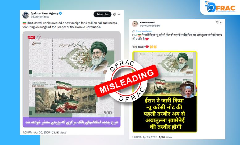 सोशल मीडिया पर ईरान के दिवंगत सुप्रीम लीडर अयातुल्ला ख़ामेनेई की तस्वीर वाले बैंकनोटो की एक तस्वीर तेजी से वायरल हो रही है। तस्वीर के हवाले से दावा किया जा रहा है कि ईरान केंद्रीय बैंक ने 50 लाख रियाल के बैंकनोटों का एक नया डिज़ाइन जारी किया है, जिसमें दिवंगत सुप्रीम लीडर की तस्वीर अंकित है।