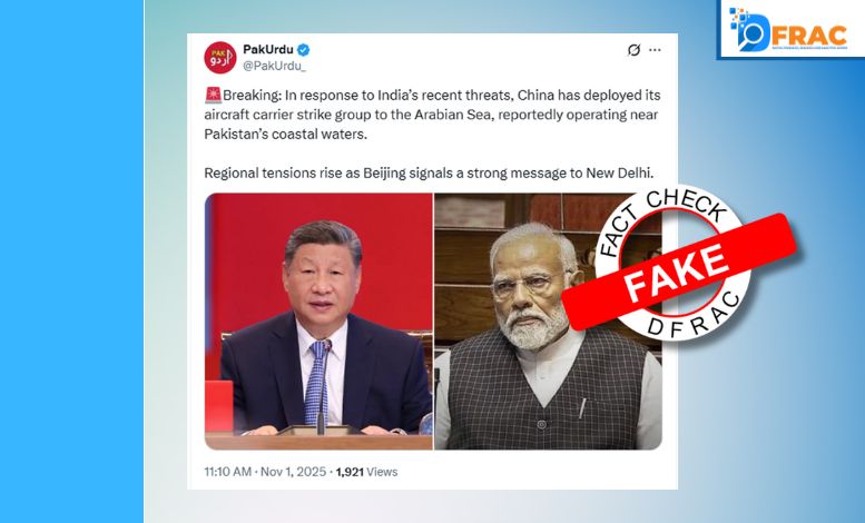 फैक्ट चेक: क्या भारत की धमकियों के जवाब में, चीन ने अरब सागर में अपना विमानवाहक पोत स्ट्राइक ग्रुप को तैनात किया? जानिए सच्चाई