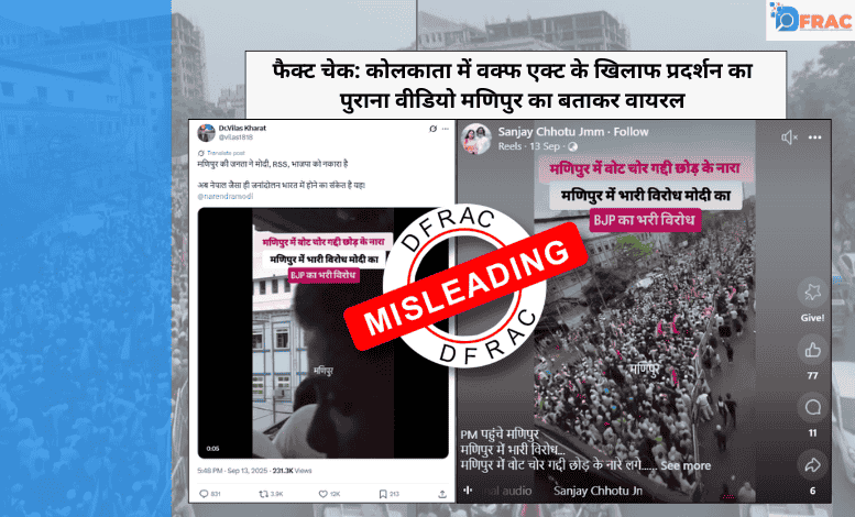 फैक्ट चेक: कोलकाता में वक्फ एक्ट के खिलाफ प्रदर्शन का पुराना वीडियो मणिपुर का बताकर वायरल