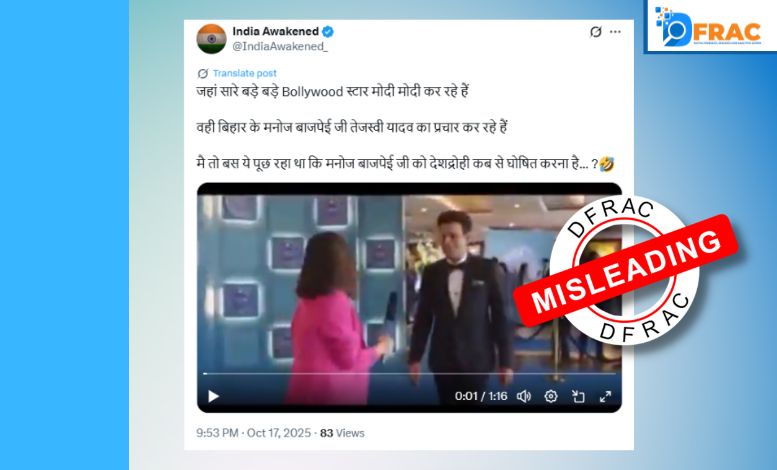 फैक्ट चेक: क्या बिहार चुनाव में अभिनेता मनोज बाजपेयी ने किया तेजस्वी यादव का समर्थन? जानिए सच