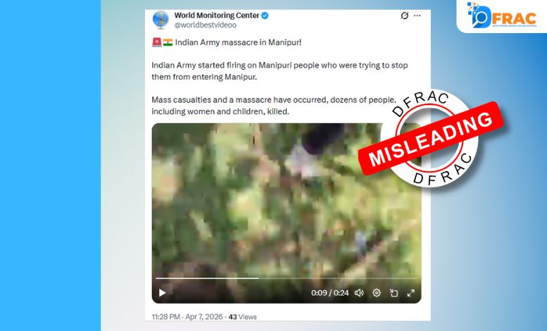 मणिपुर में एक हमले में 2 बच्चों की मौत के बाद तीव्र प्रदर्शन हुए, जिसमें दो लोगों की मौत हो गई। इस बीच सोशल मीडिया पर पाकिस्तानी प्रोपेगेंडा हैंडल्स दावा कर रहे हैं कि मणिपुर में भारतीय सेना की गोलीबारी में 200 लोग मारे गए हैं और कई घायल हैं। एक यूजर ने अंग्रेजी भाषा […]