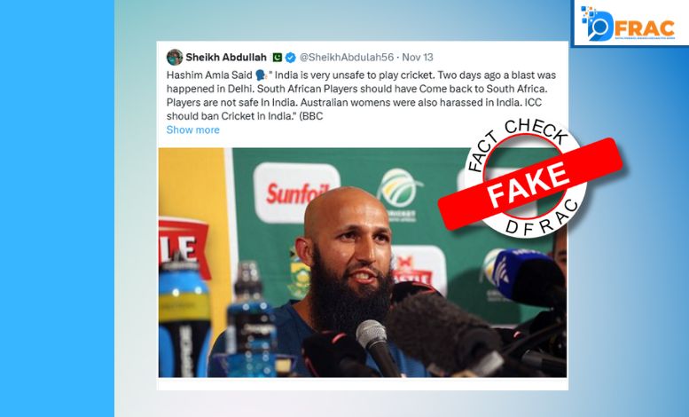 फैक्ट चेक: फैक्ट चेक: क्या दिल्ली धमाके के बाद क्रिकेटर हाशिम अमला ने बताया भारत को असुरक्षित? जानिए सच