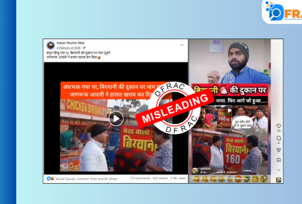 فیکٹ چیک: مسلمان بریانی والے کا نام پوچھنے آئے کٹر ہندو کو بھگا دینے کا ویڈیو اسکرپٹڈ ہے