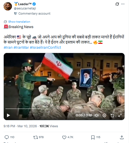 اس کے علاوہ بھی کئی دیگر صارفین نے اس ویڈیو کو اس دعوے کے ساتھ شیئر کیا کہ ایران نے گرفتار امریکی فوجیوں کی ویڈیو جاری کی ہے۔
