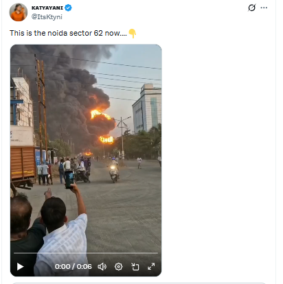 نوئیڈا میں تنخواہ سمیت کئی مطالبات کو لے کر مزدوروں نے مظاہرہ کیا۔ مظاہرے کے دوران کئی گاڑیوں کو آگ بھی لگا دی گئی۔ اس دوران سوشل میڈیا پر ایک فیکٹری میں بھیانک آگ لگنے کا ویڈیو نوئیڈا سیکٹر 62 کا بتا کر شیئر کیا جا رہا ہے۔ یوزرز کا دعویٰ ہے کہ مظاہرہ کرنے والوں نے ایک فیکٹری میں آگ لگا دی ہے۔