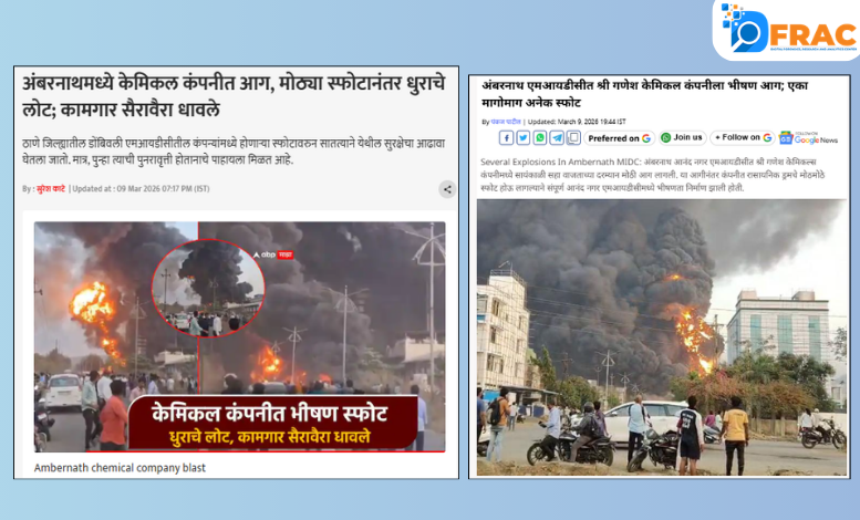 وہیں ہمیں کیمیکل فیکٹری میں آگ کے واقعے کی کوریج اے بی پی ماجھا اور لوکمت پر بھی ملی۔ اے بی پی ماجھا کی رپورٹ میں بتایا گیا ہے: ‘امبرناتھ کے آنند نگر ایم آئی ڈی سی میں ایک کیمیکل کمپنی میں بھیانک دھماکہ ہوا۔ دھماکے کے بعد شدید آگ اور دھواں پھیلتا ہوا نظر آیا۔ دھماکے کے بعد کمپنی کے کیمیکلز سڑک پر پھیل گئے، جس سے سڑک پر آگ لگ گئی اور دھوئیں کے بادل دور دور تک پھیلتے ہوئے دیکھے گئے۔’ (ترجمہ)