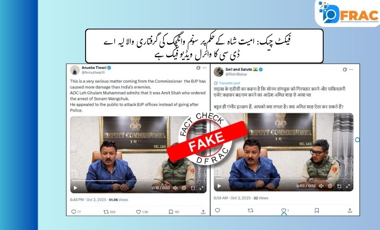 فیکٹ چیک: امیت شاہ کے حکم پر سونم وانگچک کی گرفتاری والا لیہ ADC کا وائرل ویڈیو فیک ہے