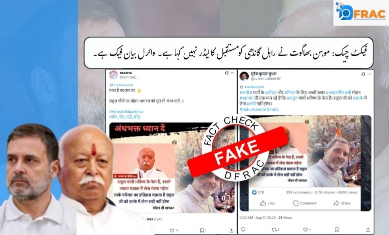 فیکٹ چیک: موہن بھاگوت نے راہل گاندھی کو مستقبل کا لیڈر نہیں کہا ہے۔ وائرل بیان فیک ہے۔