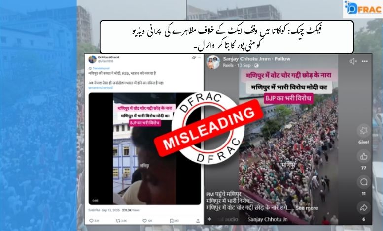 فیکٹ چیک: کولکاتا میں وقف ایکٹ کے خلاف مظاہرے کی پرانی ویڈیو کو منی پور کا بتا کر وائرل۔